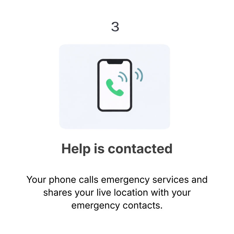 Sends your exact location and SOS alert to emergency contacts.
